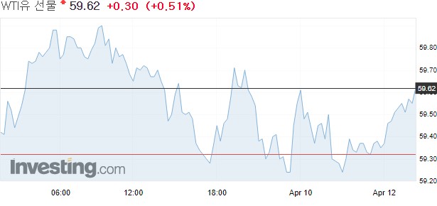 뉴욕상업거래소에서 5월물 서부 텍사스산 원유(WTI) 가격은 전장보다 0.28달러(0.5%) 하락한 배럴당 59.32달러에 거래를 마쳤다.