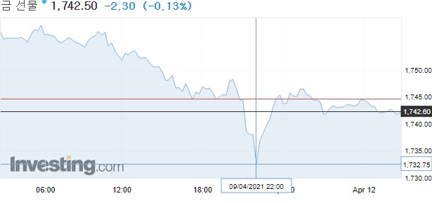 9일 뉴욕상품거래소에서 4월물 금 가격은 전 거래일보다 13.40달러(0.8%) 하락한 1,744.80달러에 마감했다.