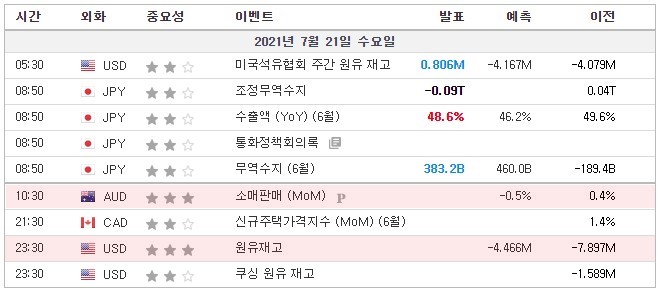 [21.07.21. 경제지표] 호주 소매판매 / 미국 원유재고
