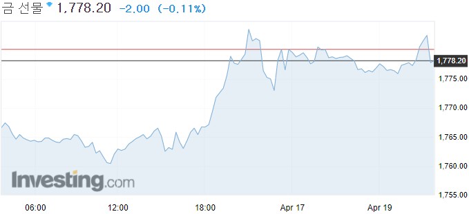 16일 뉴욕상품거래소에서 4월물 금 가격은 전 거래일보다 13.40달러(0.8%) 상승한 1,780.20달러에 마감했다. 금값은 이번주 2% 가까이 상승했다.