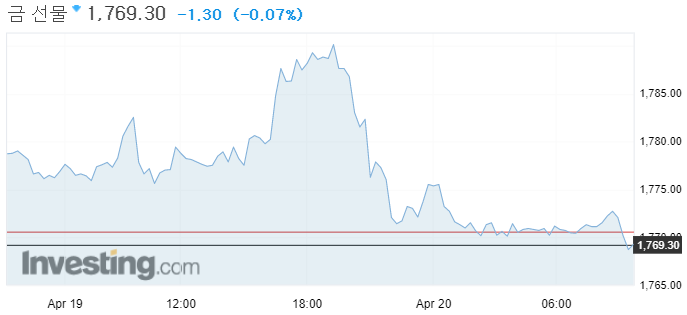 19일 뉴욕상품거래소에서 4월물 금 가격은 전 거래일보다 9.60달러(0.8%) 하락한 1,770.60달러에 마감했다.