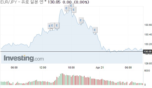 유로는 엔에 유로당 130.05엔을 기록, 전장 130.24엔보다 0.19엔(0.15%) 하락했다.
