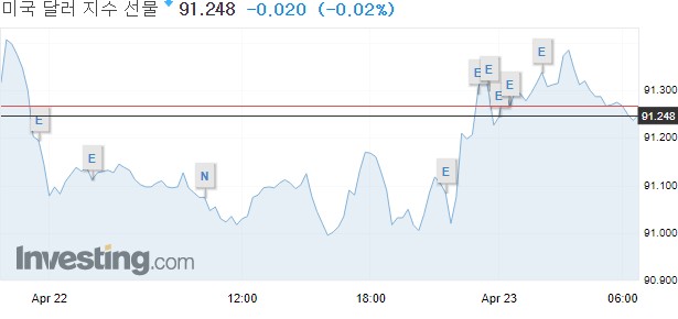 현재 주요 6개국 통화 대비 달러 가치를 나타내 주는 ICE 달러지수는 0.19% 오른 91.33에 거래되고 있지만 최근 계속 낮은 수준에서 움직이고 있다.