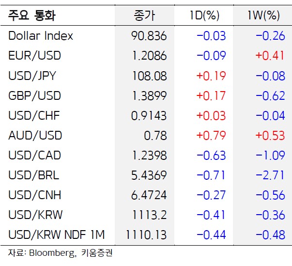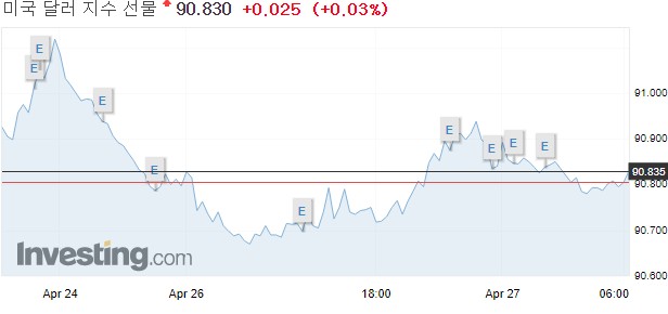 주요 6개 통화에 대한 달러 가치를 반영하는 달러 인덱스는 전장 수준인 90.818을 기록했다.