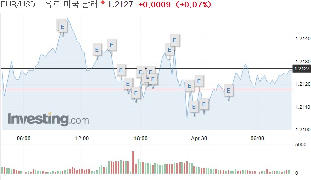 유로화는 유로당 1.21289달러에 움직여, 전장 가격인 1.21300달러보다 0.00011달러(0.01%) 하락했다.