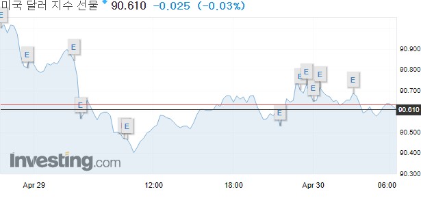 주요 6개 통화에 대한 달러 가치를 반영하는 달러 인덱스는 전장보다 0.03% 상승한 90.597을 기록했다.