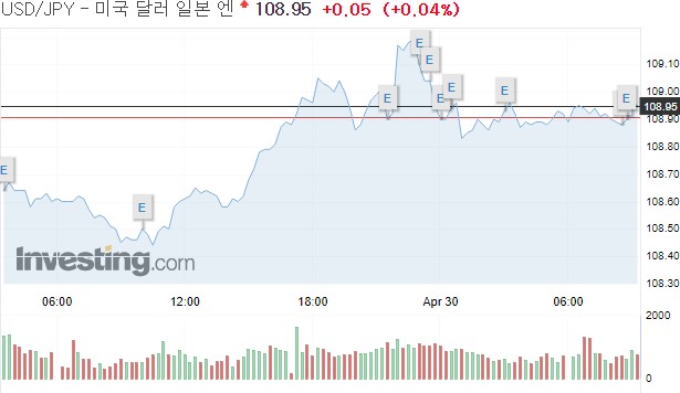 29일(이하 미국 동부시간) 뉴욕 외환시장에서 달러화는 108.890엔을 기록, 전장 뉴욕 후장 가격인 108.610엔보다 0.280엔(0.26%) 상승했다.