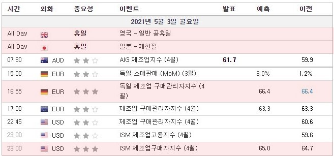 [21.05.03. 경제지표] 런던·도쿄 증권거래소 휴일 / 독일 제조업 구매관리자지수 / 미국 ISM 제조업구매자지수