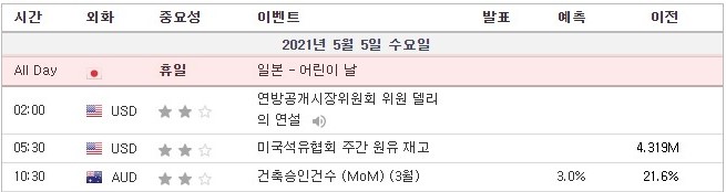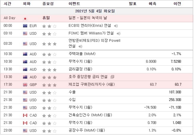 [21.05.04. 경제지표] 일본 도쿄증권거래소 휴일 / 호주중앙은행 금리연설 / 영국 제조업구매관리자지수