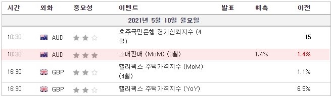 [21.05.10. 경제지표] 호주국민은행(NAB) 경기신뢰지수 · 소매판매 / 영국 핼리팩스 주택가격지수
