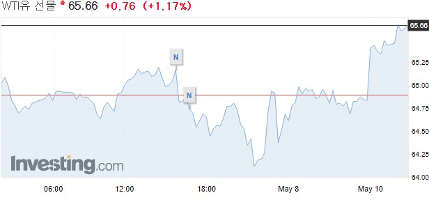 뉴욕상업거래소에서 6월물 서부텍사스산원유(WTI) 가격은 전장보다 19센트(0.3%) 오른 배럴당 64.90달러에 거래를 마쳤다.