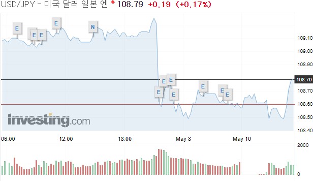이날 오후 4시(현지시각) 뉴욕 외환시장에서 달러화는 108.595엔을 기록, 전장 뉴욕 후장 가격인 109.044엔보다 0.449엔(0.41%) 하락했다.