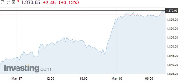 17일 뉴욕상품거래소에서 6월물 금 가격은 전 거래일보다 29.50달러(1.60%) 상승한 1,867.60달러에 마감했다. 팩트셋 자료에 따르면 지난 1월 7일 이후 최고치다.