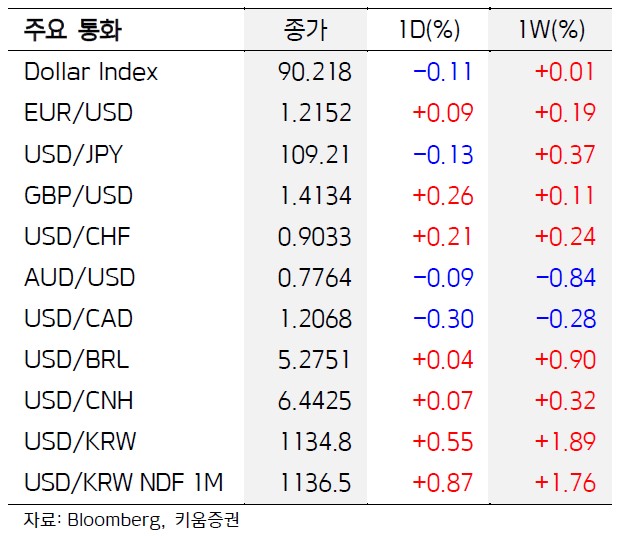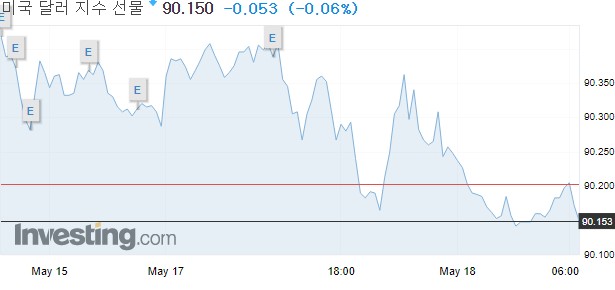 주요 6개 통화에 대한 달러 가치를 반영하는 달러 인덱스는 전장보다 0.17% 하락한 90.175를 기록했다.