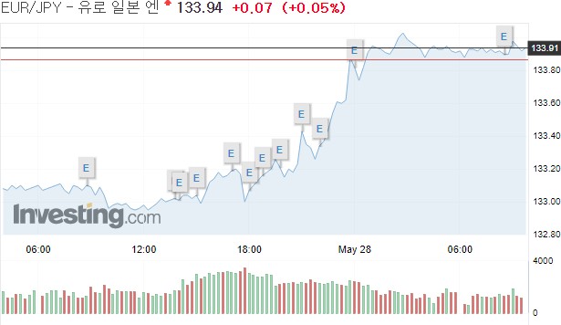 유로는 엔에 유로당 130.55엔을 기록, 전장 129.78엔보다 0.77엔(0.59%) 올랐다.