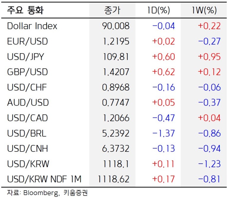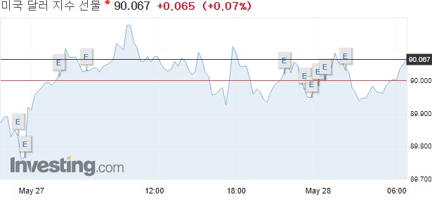 달러인덱스는 약보합권에 머물렀다. 주요 6개 통화에 대한 달러 가치를 나타내는 달러인덱스는 이날 전일 대비 하락한 90.07을 기록하고 있다.