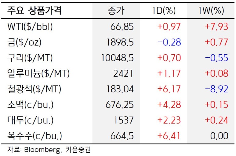 주요 원자재 상품 종가