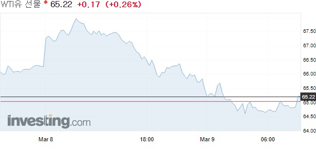 이날 뉴욕상업거래소에서 4월물 서부 텍사스산 원유(WTI) 가격은 배럴당 1.04달러(1.6%) 하락한 65.05달러에 장을 마감했다.