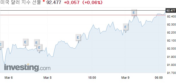 주요 6개 통화에 대한 달러 가치를 반영하는 달러 인덱스는 전장보다 0.51% 상승한 92.414를 기록했다.