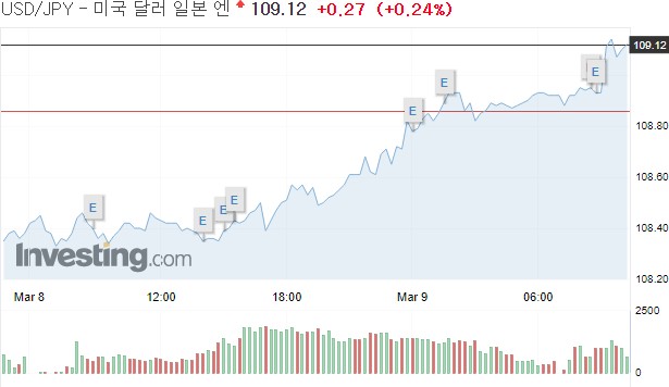 [21.03.09. 세계경제뉴스 및 환율] 금리 상승 부담 속 주가 혼조·국채↓·달러↑금가격 하락