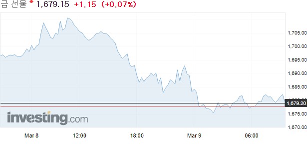 8일 뉴욕상품거래소에서 4월물 금 가격은 전 거래일보다 20.50달러(1.2%) 하락한 1,678달러에 마감했다. 금값은 9개월래 최저치까지 떨어졌다.