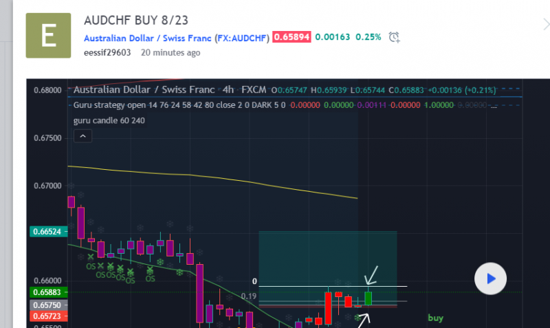 Fib Retraction, Guru DMI, Guru 알고리즘, 촛대를 활용한 AUDCHF BUY 8/23