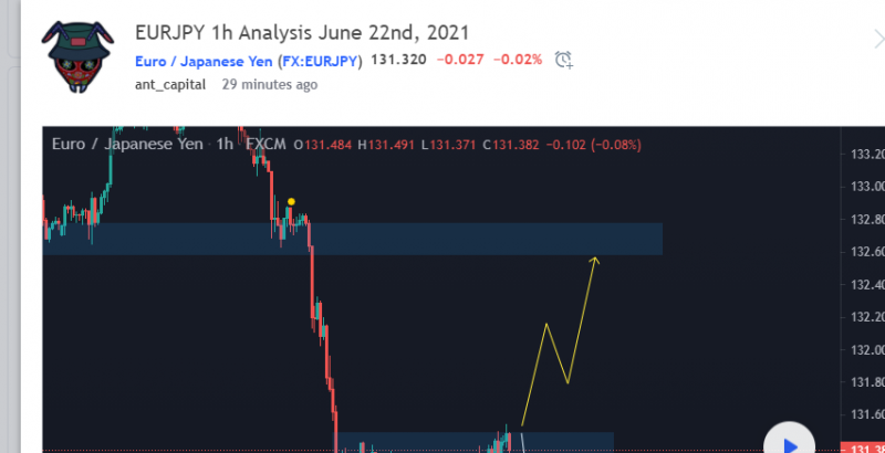 원문링크: https://www.tradingview.com/chart/EURJPY/m4iPlC4D-EURJPY-1h-Analysis-June-22nd-2021/