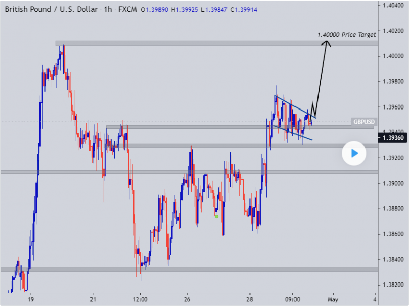 Price will breakout out of this bullish flag and will continue to the upside (1.40000)