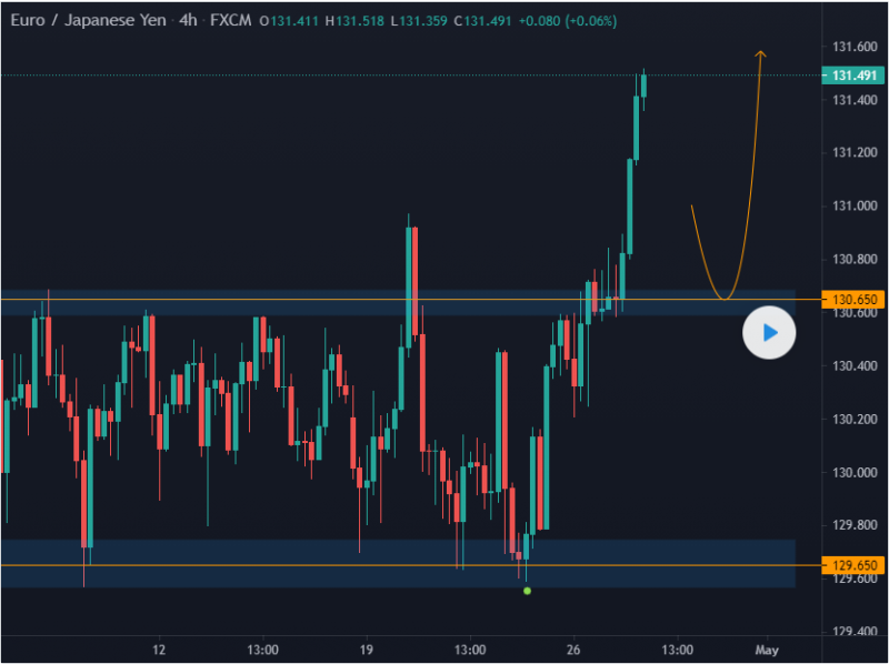 Clearly the market broken out the resistance level at 130.650. So now we will wait for a simple break and retest pattern where we would enter after the retest on the said level. Check for wick rejection and other candlestick formation before entering a position.