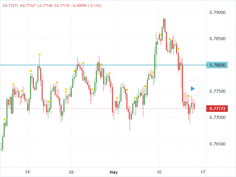 전반적으로 AUD/USD 범위가 다양합니다. 최근, AUD/USD는 0.77의 주요 수준에서 튕겨나갔다.