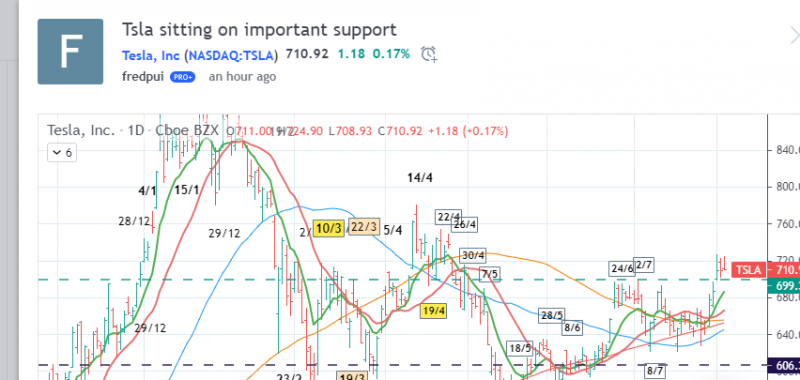 700 is a key support/resistance for tsla so far. and it is siting betweem 700 and 720 at the moment. 720 is also important as it's 360 (full degree of a circle x 2). Let's see which way it goes .. it needs to clear well off 720 in order to be bullish .