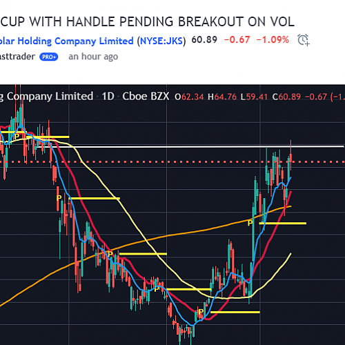 [해외주식] $JKS 컵(볼에서 브레이크아웃 보류 중) / $JKS CUP WITH HANDLE PENDING BREAKOUT ON VOL