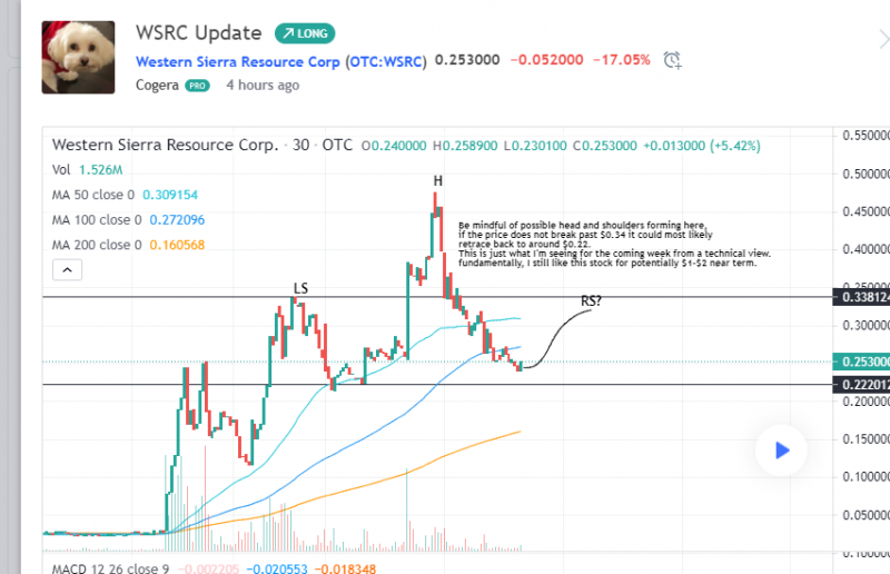 on the chart I've posted what I'm seeing from a technical view. overall, I remain very bullish for WSRC long term. With the proper PR I still believe this could see $1-$2 over the next couple of months if not sooner.