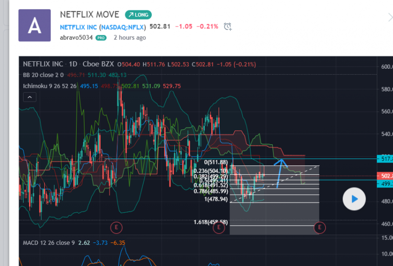 As you guys noticed, Netflix has been consolidating for quite some time. Netflix looks nice for a run this week to 520 working our way up again to 530. Off the 618 level rejection & support from neckline from h&S . Follow for more