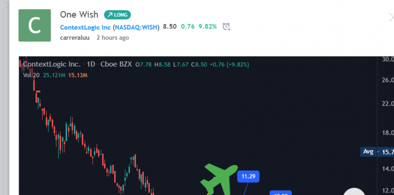 I think this is the bottom on Wish. It formed a W pattern at the bottom, I now see this thing going to $11-15 dollars , possible can short squeeze this week due to the whole meme stock hype.