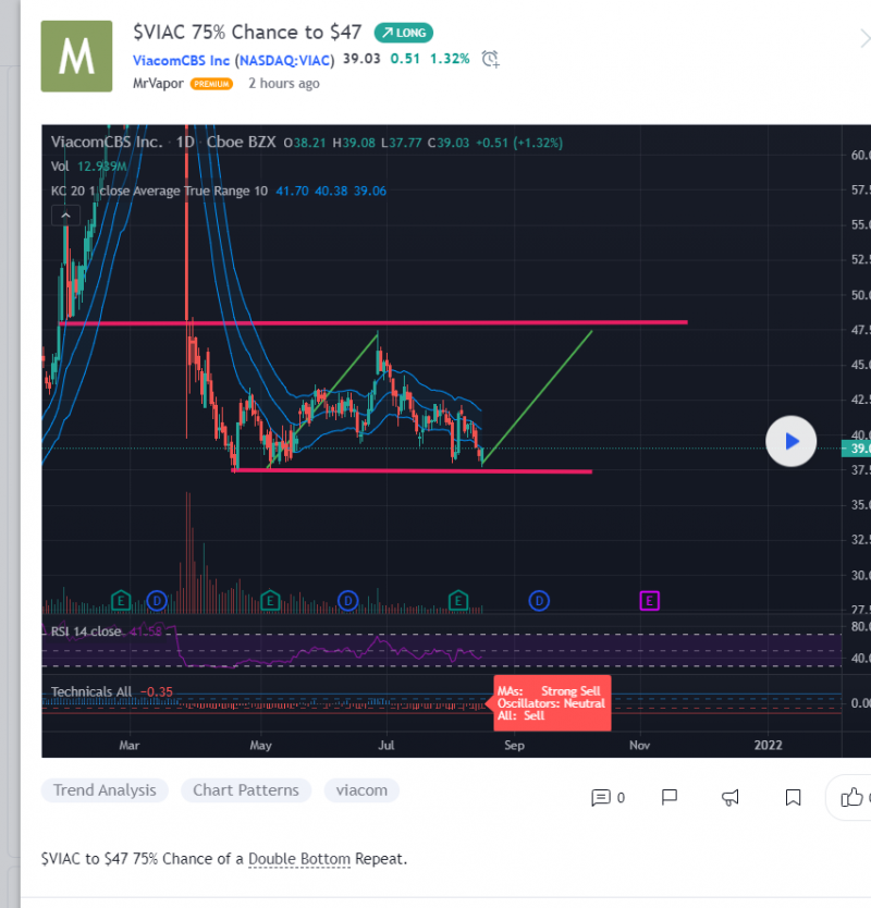 $VIAC to $47 75% Chance of a Double Bottom Repeat.
