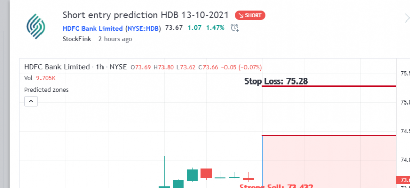 Short entry for HDB predicted by our AI algorithm. The time horizon of the prediction is approximately 5 days.