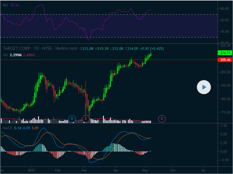 NYSE:TGT making new high. JUN 18 '21 $220 calls in play