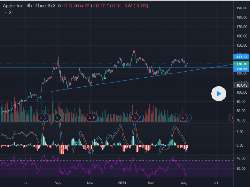 Apple keeps testing that 138$ resistance, MACD hour about to turn bullish , we keeping making higher lows and making more aggressive tests of that 138$ level... this thing is gonna have a crazy rip higher once 138$ is breached... be patient and get ready for a big payday when 138$ is breached